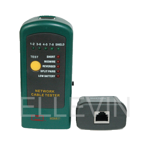Кабельный тестер MASTECH MS6811 – очень компактный удобный прибор для проверки коаксиальных кабелей, неэкранированных кабелей, экранированных кабелей. Длина проверяемого кабеля может составлять от 0.4 до 200 метров. Осуществляет проверку на обрывы, короткие замыкания, перекрестные, перепутанные и расщепленные пары. Также доступна проверка целостности экранировки кабеля, режим DEBUG, позволяющий быстро определить тип неисправности для каждой пары кабеля.