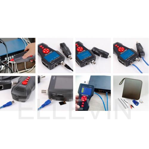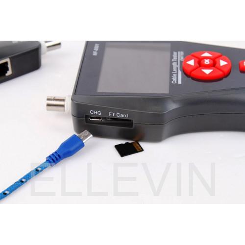 Метод измерения расстояния - емкостной. Проведение Ping теста в локальной сети, в сети интернет Автоматическое определение и присвоение IP адреса (DHCP клиент) Возможность изменять данные пакета: количество пакетов, длина пакета, time out, TTL Тестирование PoE «питание-через-Ethernet» Обнаружение любых типов проводников с помощью генератора и радиоприемника Частота генерируемого сигнала: 225 Гц, 2-х тоновый генератор Максимальная дистанция обнаружения: 2000 м Измерение длины кабеля: 1 … 2000 м витая пара коаксиальный кабель телефонный кабель USB Погрешность измерений: 3% ±0,5м