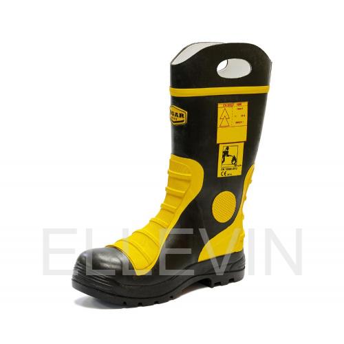 TIGAR® Firefighter 2 разработаны для профессиональных пожарных и обладают высокими защитными свойствами. Изделие защищает от ударов в носочной части. Подошва жаропрочная, предотвращает скольжение ноги. Сапоги водонепроницаемые, масло-бензостойкие, устойчивы к многократным изгибам. Удобная колодка и петли на голенище для быстрого надевания обеспечивают комфорт в носке. В районе пятки и взъёма спереди расположены усиленные накладки для защиты от удара. Резиновые сапоги британских пожарных помимо водонепроницаемых свойств обладают также и огнеупорными (огнестойкими) качествами. TIGAR® Firefighter 2 могут использоваться в среде с риском прокола подошвы, на скользких участках, при наличии поверхностей с повышенными температурами, в условиях повышенной влажности, при работе с маслами и смазками, в условиях общепроизводственных загрязнений. Средство индивидуальной защиты может использоваться при тушении пожара и на открытых площадях, где существует риск поражения электрическим током. Представленная обувь пожарного соответствует международным требованиям к эксплуатационным характеристикам материалов и соответствует техническому регламенту «О требованиях пожарной безопасности» и международным требованиям EN ISO 15090 и A29.