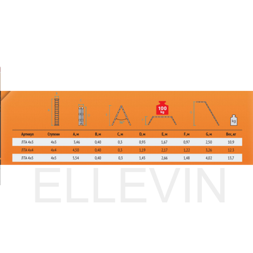 Среди особенностей модели можно выделить ступени с рифлением для безопасного подъема и спуска, стойки и ступени из прессованного алюминиевого профиля. Стойки с дополнительным усилием в наиболее нагруженных местах для повышения жесткости. Многократная развальцовка в соединении ступеней со стойками обеспечивает высокую прочность и долговечность. Шарнирные замки регулируются одной рукой. Широкие поперечные траверсы обеспечивают высокую устойчивость при работе во всех положениях. Башмаки траверсы препятствуют скольжению и надежно закреплены с помощью заклепок. Максимальная нагрузка в положении помост 100 кг.