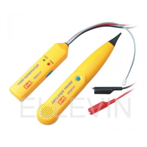 Mastech MS6812 хороший помощник специалистам по прокладке, обслуживанию и ремонту телефонных линий. Кабельный тестер состоит из приемника и передатчика. Передатчик генерирует синусоидальный сигнал частотой около 2кГц и снабжен соединительными проводами красного и черного цвета и стандартным 4-х проводным телефонным кабелем с вилкой. Приемник состоит из высокочувствительного сенсора и усилителя. Для поиска проводки достаточно включить передатчик, черный провод подключить на корпус или на массу, а красный провод к исследуемой цепи. Приемник необходимо поднести к исследуемой линии, громкость звука будет наибольшая около искомого проводника. Регулятор уровня звука в приемнике позволяет увеличивать чувствительность и настраивать прибор на конкретные условия работы. При необходимости можно использовать наушники, для этого предусмотрен специальный разъем. Питание осуществляется с помощью батареи 9В. Основные характеристики: