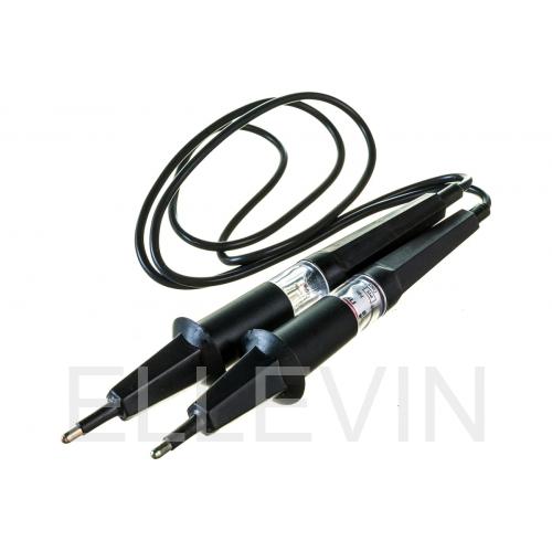 При определении напряжения контакт-наконечник обеих корпусов подсоединяются к тестируемой цепи. При наличии напряжения светится газоразрядная лампа.