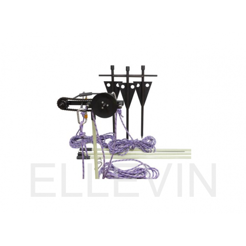 Устройство обеспечивает дополнительное крепление опоры тремя оттяжками из полиамидного троса с помощью трех вбиваемых в землю якорей и фиксирующего устройства, которое поднимается на опору сборной штангой и фиксируется на ней винтовым зажимом.