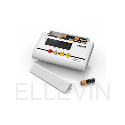 Важные преимущества весового индикатора SH-20 — доступная цена и двойной способ подачи питания. При отсутствии возможности подать напряжение по проводам с адаптера, используется набор из 6-ти элементов типа AA. Также можно использовать перезаряжаемый аккумулятор напряжением 6 В. Автономное питание делает схему подключения тензодатчиков веса проще и удобнее, так как внешний источник в этом случае не требуется.