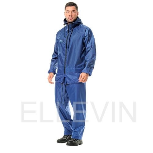 Костюм изготовлен из прочной плащевой ткани с ПВХ покрытием. Вес ткани - 225 гр./метр.кв. Водоупорность ткани не менее 5000 мм водяного столба. Ткань экологична и соответствует европейскому стандарту по содержанию вредных веществ EN 71 PART3. Проклеенные швы: все швы плаща загерметизированы специальной лентой