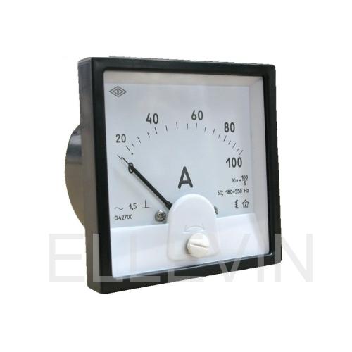 Амперметр Э42700 - прибор электромагнитной системы, предназначен для измерения тока в цепях переменного тока. Амперметры электромагнитной системы более устойчивы к перегрузкам и это позволяет создавать приборы с коэффициентом перегрузки от 2-х до 5-ти кратного диапазона измерения. Диапазоны измерений от 100 мА до 100 А при прямом включении. Для расширения диапазонов измерения применяются трансформаторы тока типа ТОП-0,66 (заказываются отдельно). Амперметры Э42700 изготавливаются с нулевой отметкой на краю диапазона и могут быть изготовлены со шкалами в любых единицах измерения по желанию заказчика.