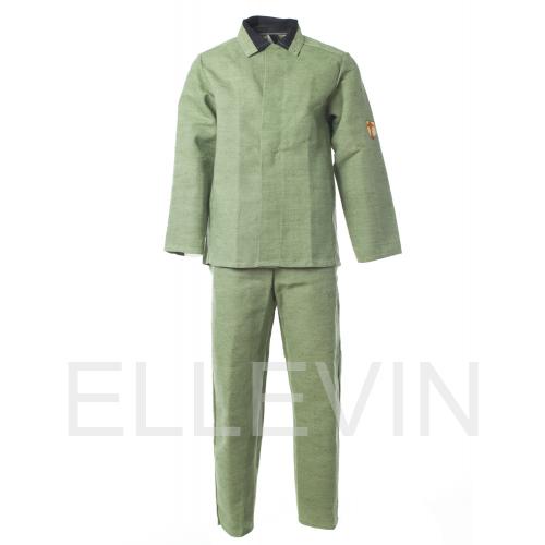Костюм сварщика мод. КСВ-1Б изготовлен в соответствии с ГОСТ и включает 2 предмета: куртка, брюки. По кокетке спинки расположены Вентиляционные отверстия. Брюки застегиваются на пуговицы в боковых швах. На изделии также размещена потайная застежка на пуговицы.