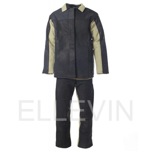 Костюм сварщика утепленный с накладками спилка, мод. КСВУ-3СП-2,6 изготовлен в соответствии с ГОСТ и включает 2 предмета: куртка, брюки. На изделии расположены усилительные накладки из кожаного спилка. Костюм оснащен притачным утеплителем - ватин ПШ (2 слоя). Подкладка изделия - бязь.
