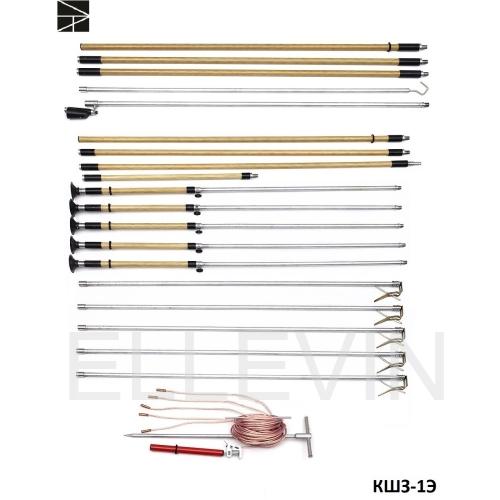 Заземление переносное КШЗ-1Э Комплект штанг для заземления ВЛ 1 кВ КШЗ-1Э предназначен для заземления проводов отключенных ВЛ напряжением 1 кВ непосредственно с поверхности земли, а также для проверки наличия или отсутсвия напряжения воздушных линий, при температуре от -40°С до +40°С и относительной влажности воздуха не выше 80% при 25°С.