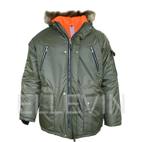 Куртка "Аляска" изготовлена в соответствии с ГОСТ. Модель имеет удлиненный фасон на поясе, дополнена эластичной резинкой для комфортной посадки. Ветрозащитная планка на кнопках обеспечивает дополнительную защиту от ветра. Капюшон пришит к куртке и оснащен съемной меховой опушкой, что позволяет варьировать его использование в зависимости от погодных условий и предпочтений.