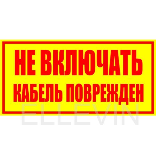 Знак (плакат) «Не включать! Кабель поврежден», S52 на пластике, размером 250х140 мм предупреждает о том, что включать установку или электроприбор не безопасно, так как имеются повреждения. Знаки и плакаты по электробезопасности изготовлены согласно требованиям Министерства энергетики России и являются предупреждающими знаками об опасности, связанной с электронапряжением