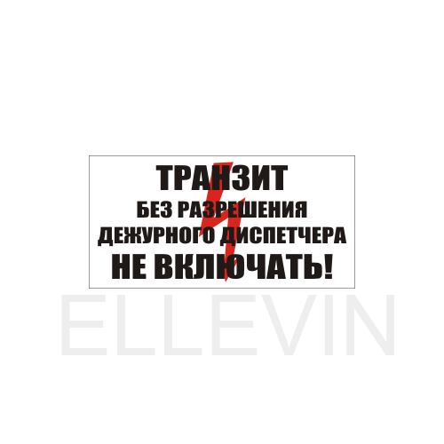 Плакат «Транзит. Без разрешения дежурного диспетчера Не включать», S53 на пластике, размером 250х140 мм запрещает включать установку без ответственного лица. Знаки и плакаты по электробезопасности изготовлены согласно требованиям Министерства энергетики России и являются предупреждающими знаками об опасности, связанной с электронапряжением.