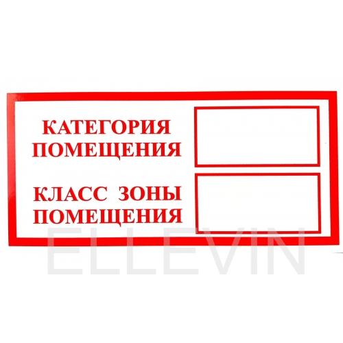 Табличка «Категория помещения, класс зоны помещения» (пленка, 200х100 мм)