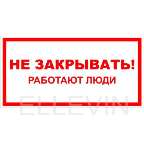 Плакат, знак безопасности "Не закрывать работают люди" Служит для запрещения в электроустановках электростанций и подстанций, на вентилях и задвижках воздуховодов, воздухосборниках, на пневматических приводах выключателей и разъединителей 200 х 100 мм