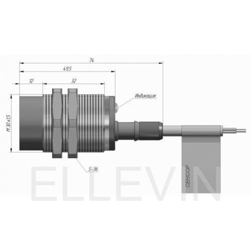 Индуктивный датчик ВБИ-М30-49С-2111-С в цилиндрическом корпусе из никелированной латуни Ø30 мм, в общепромышленном исполнении. Предназначен для надежного обнаружения металлических предметов бесконтактным способом.