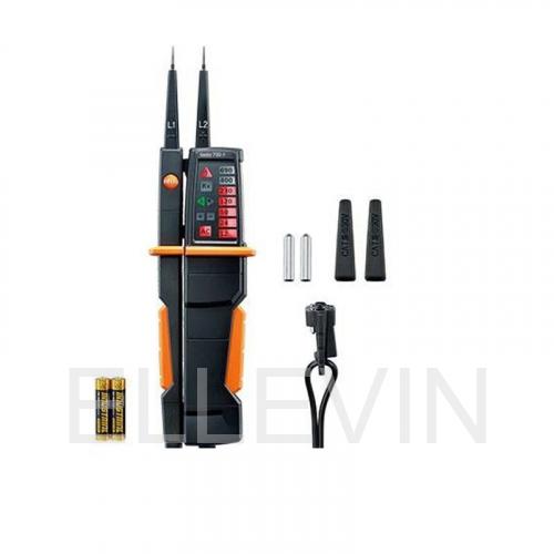 Тестер напряжения testo 750-3 – это самый инновационный вольтметр на рынке. Четкий полностью светодиодный дисплей с оптоволоконной технологией кругового обзора для идеального отображения напряжения может легко читаться под любым углом. Дополнительный ЖК-дисплей также отображает текущие показания. Сильно выступающий ободок, препятствующий выскальзыванию, и эргономичная форма рукоятки обеспечивают вам максимально комфортную работу. Встроенный фонарик помогает подсвечивать темные места замеров. Прочный корпус делает тестер предельно надежным. Тестер напряжения testo 750-3 прежде всего подходит для проверки наличия или отсутствия напряжения в электрической сети. Помимо этого, он также может использоваться для теста целостности цепи, определения направления вращающихся магнитных полей и тестирования устройств защитного отключения. Благодаря вибрации при нажатии на кнопки запуска тест отключения не может быть проведен случайно.