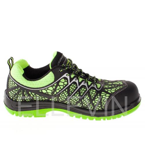 Кроссовки «МИСТРАЛЬ НЕОН» выполнены из дышащего водоотталкивающего трикотажного материала с накладками из ТПУ для дополнительной прочности и защиты. Подкладка кроссовок выполнена из текстильного воздухопроницаемого полотна с крупной ячейкой, что обеспечивает хорошую вентиляцию и комфорт. Подносок кроссовок укреплен и изготовлен из поликарбонатного материала (Мун 200 Дж) для защиты ноги. Подошва кроссовок двуслойная, выполнена из полиуретана и термополиуретана (ПУ-ТПУ) для комбинации комфорта и прочности. Стелька кроссовок антипрокольная, выдерживает нагрузку до 1200Н и обеспечивает защиту от проникновения острых предметов. Для безопасной работы сотрудника в местах с плохим освещением на кроссовках «МИСТРАЛЬ НЕОН» расположены световозвращающие элементы.