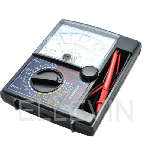 Мультиметр YX360TRD, используется для измерения постоянного и переменного напряжения, постоянного тока , сопротивления, измерение емкости конденсаторов, прозвон цепей. Большая шкала с маштабом на 80 мм, чуствительная измерительная головка, подстройка нуля омметра, функция измерения ёмкости, интегрированные щупы.