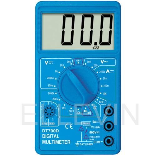 Цифровой мультиметр DT700D для измерения постоянного, переменного напряжения, постоянного тока, сопротивлений, проверки диодов и транзисторов.
