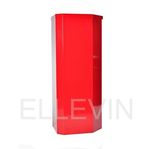 Шкаф для размещения огнетушителя массой 6-12 кг. углового типа, С ЦЕЛЬНОМЕТАЛЛИЧЕСКОЙ ДВЕРЦЕЙ, красного или белого цвета (литера К или Б в названии шкафа); оснащён почтовым замком и гнездом для запасного ключа.
