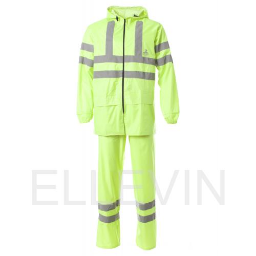 Костюм «ТАЙФУН» изготовлен в соответствии с ГОСТ и включает в себя два предмета: куртка / брюки. Он обеспечивает максимальную защиту от дождя, ветра, снега и загрязнений во время работы или активного отдыха, а также обеспечивает максимальную безопасность в условиях плохой видимости. Куртка прямого силуэта оснащена притачным капюшоном и отложным воротником. Пояс на резинке обеспечивает комфортную посадку. Центральная застежка на молнию скрыта за ветрозащитной планкой на кнопках. На куртке расположены два нижних кармана с влагозащитными клапанами для удобного хранения вещей. На капюшоне шнур с фиксаторами для более плотного прилегания. Рукава реглан с внутренними манжетами на резинке обеспечивают защиту от холода. Брюки прямого силуэта с эластичной тесьмой в притачном поясе и регулировкой по поясу шнуром с фиксаторами. Все швы на куртке и брюках проклеены специальной лентой, обеспечивающей 100% герметичность швов и защиту от «протечек». Для безопасной работы сотрудника в местах с плохим освещением на костюме «ТАЙФУН» с СОП предусмотрена световозвращающая полоса шириной 50 мм. Предполагаемая сфера применения: дорожные и коммунальные службы, городское хозяйство, транспорт, работа на открытом воздухе в условиях плохой видимости.