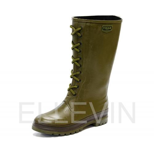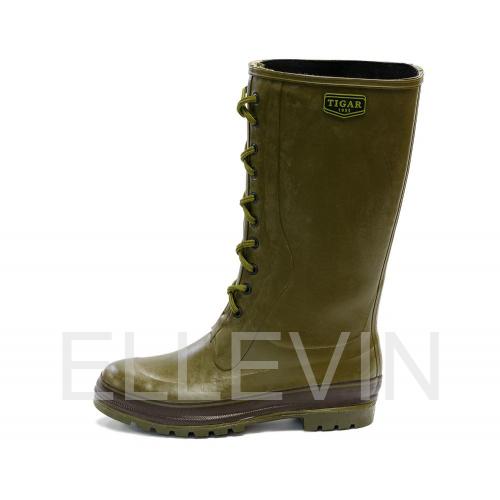 Мужские резиновые сапоги для охоты от фирмы TIGAR, разработанные и произведённые в Сербии – невероятная находка для любителей рыбалки. Сапоги ручной работы из натуральной резины прослужат очень долго. Резина – это полная изоляция от воды, грязи и снега, потрясающий комфорт. Толстая, не скользящая подошва, укрепленная металлом, не прорвется ветками, не сгибается, дает хорошую опору на лабазе. Есть металлическая защита щиколотки – нога отлично защищена. Резиновые сапоги из Европы - предмет гордости любого охотника. В данной модели продумана каждая мелочь. Модель обеспечивает удобную посадку, надёжную фиксацию на ноге с возможностью регулировки голенища и защиту от холода зимой. Верх обуви изготовлен из натуральной и искусственной резины, нескользящая подошва – из синтетической морозостойкой резины. Благодаря шнуркам сапоги отлично сидят на ноге, снег и листья не засыпаются. Специальный упор на пятке помогает легко снять сапог, не пачкая руки. Благодаря утеплению из хлопковой подкладки вам будет сухо в болоте, тепло в снегу. Сапоги из каучука превосходят в прочности сапоги из ПВХ и намного более износостойкие, чем лёгкие сапоги ЭВА.