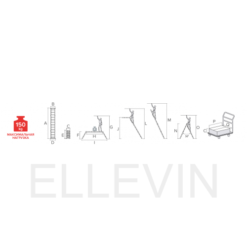 Высокопрочная лестница «4 в 1»: приставная, Г-образная с опорой на стену, двухсторонняя стремянка, помост. Увеличенный радиус работы.