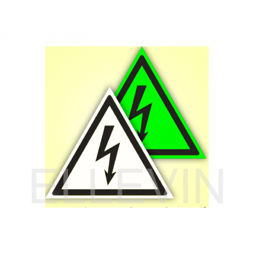 Знак W08 «Внимание! Опасность поражения электрическим током»(пленка фотолюминесцентная, сторона 150мм)